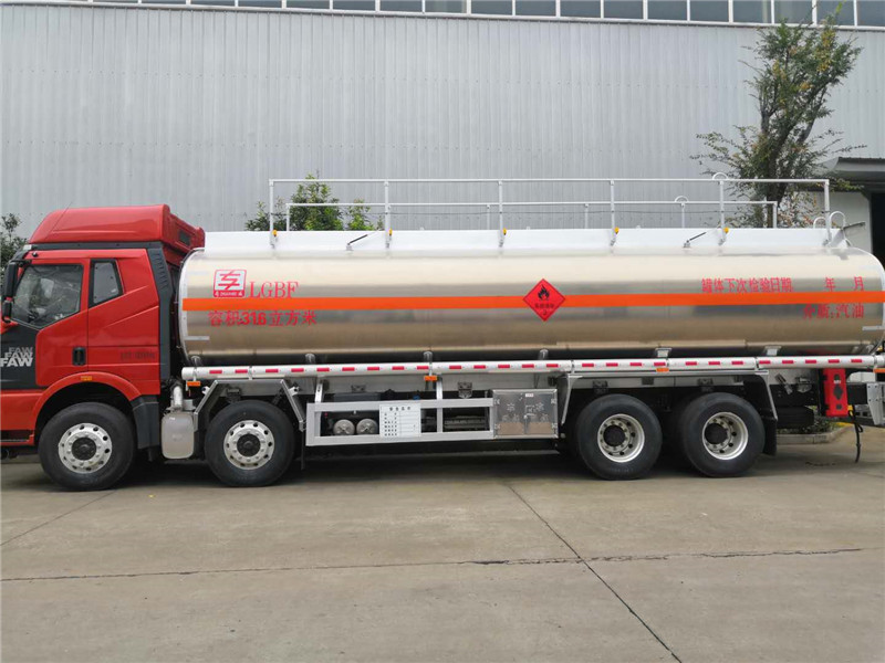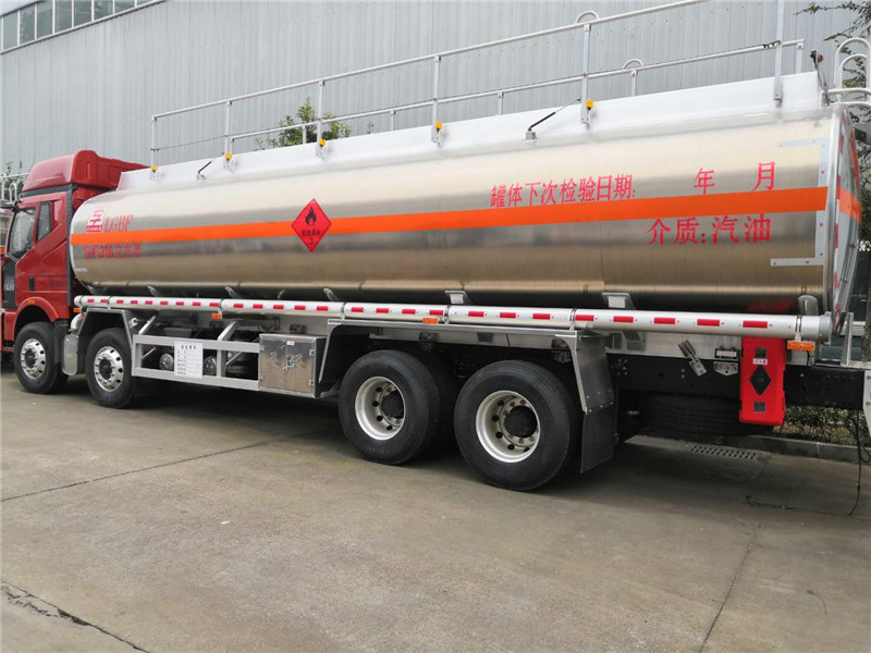 解放31.6方前四后八鋁合金油罐車上裝配置:嚴格按照公告尺寸罐體 公告容積31.6方 ,實際容積34.3方 ,運輸介質(汽油)滿載可拉24噸柴油,總質量32噸,額定載21.17噸 ,整備質量10.7噸 。單倉帶泵,帶泵進泵出,歐標罐口,下裝油全套:,一個海底閥,一個下裝油,一個廢氣回收,一個防溢流探桿及探座,,靜電盤,歐式鎖,牌照燈,一個工具箱,安全告示鐵牌,折疊護欄,配一個防火帽,2根輸油管,2個滅火器,(其余廠內標配)。可以選裝流量表或帶大流量加油機帶加油**(每分鐘加油70升,可帶遙控,可加裝加油卡)