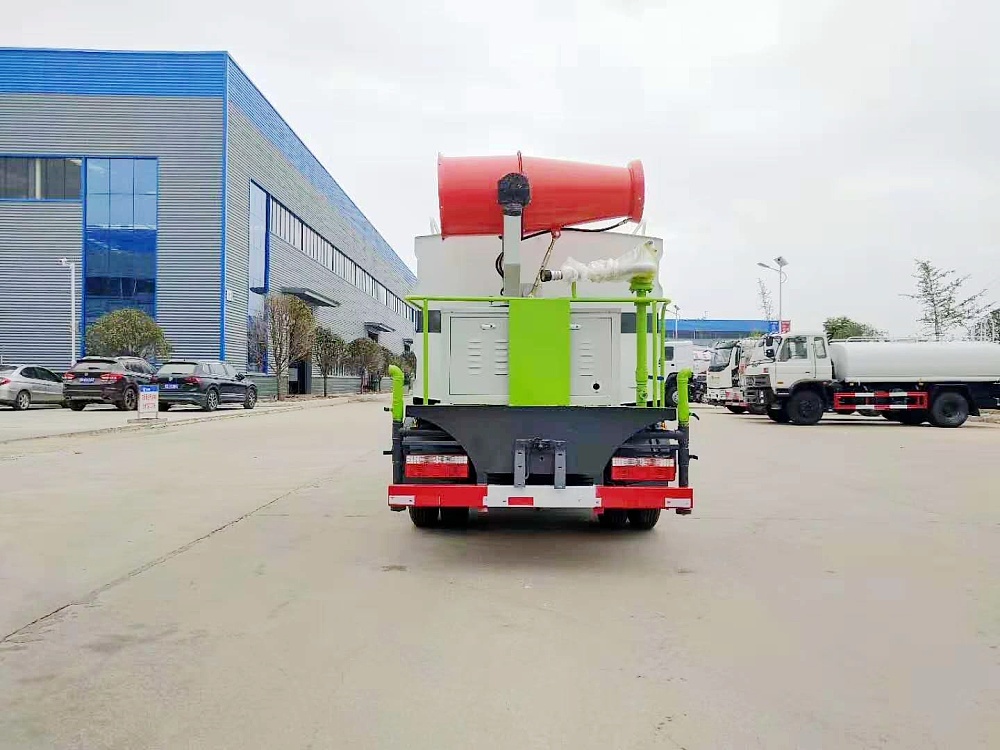 | 配置說明 | 霧炮機具有自主**技術,**號為(201621305361.8 / 201630487869.3),十五年制造經驗,產品全面通過湖北省及本地質檢局檢驗合格,可根據需求選配不同的射程規格,可遠程無線遙控操作作業,采用國內外知名發電機組及風扇電機、電控系統、大功率水泵。抑塵車具有灑水車的全部功能:前部沖洗路面噴灑裝置、后部扇形降塵噴灑裝置,兩側噴灑裝置,后部大工作平臺、平臺上安裝綠化灑水炮(炮噴射形狀可調),可調直沖狀、大雨、中雨、毛毛雨,可連續調節,其它:自流閥及消防接頭、水管3米2根,罐體防腐處理。 | |