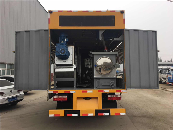 結 構:廂式結構,內部主要固定裝置為:發電機、真空泵、排污泵、分離箱、污水箱、加藥箱、混凝槽、疊螺機。