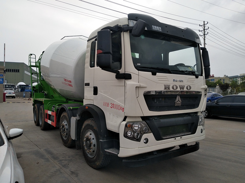 重汽T5G12-14方輕量化攪拌車配置:T5G-M白色排半駕駛室,重汽340馬力發動機,HW13710L變速箱,11.00R20鋼絲胎,ST16噸后橋,帶ABS、PTO,電動翻轉,其余標配。